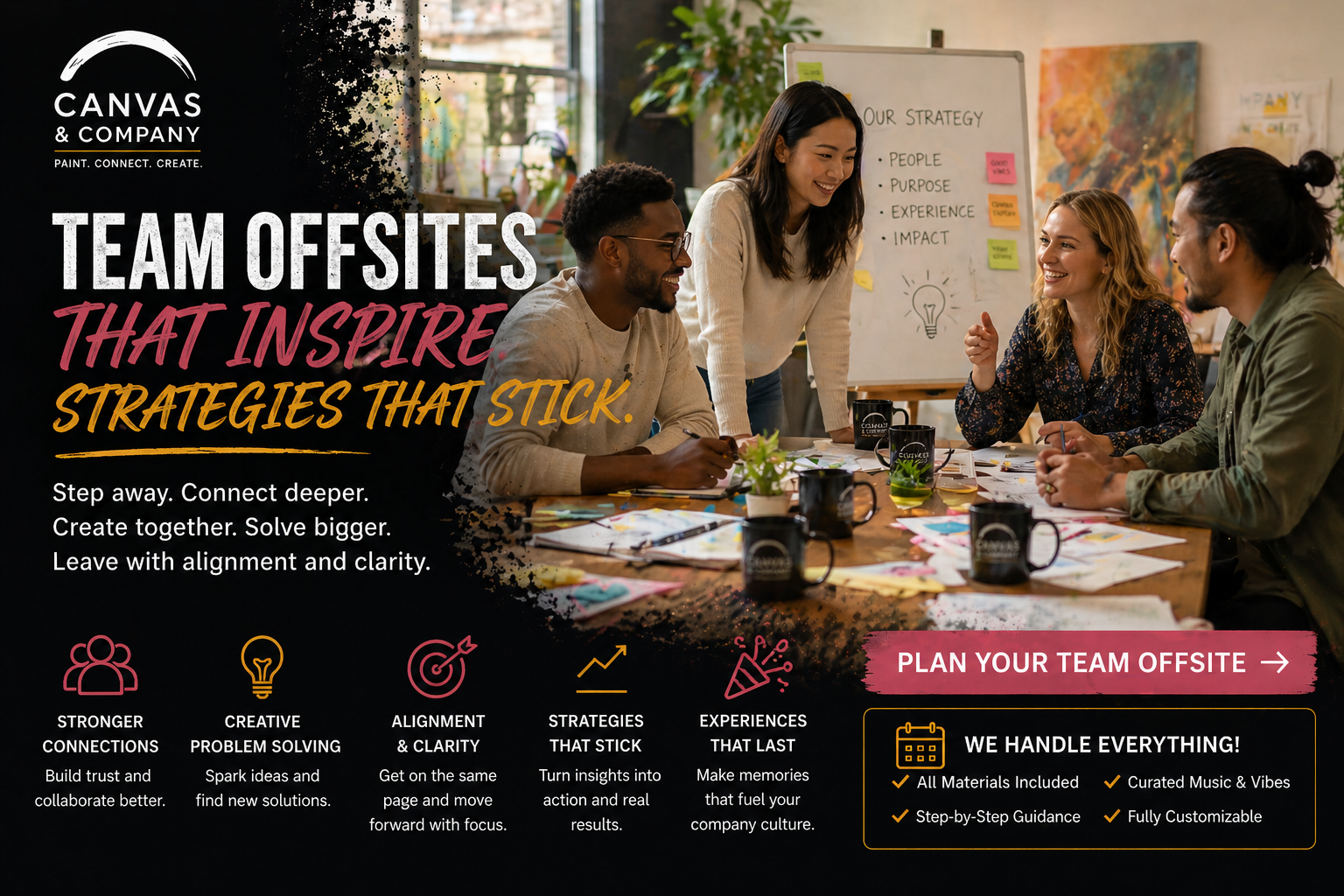 Canvas & Company partners with organizations to deliver professionally facilitated creative workshops designed to support team alignment, planning, reflection, and connection.